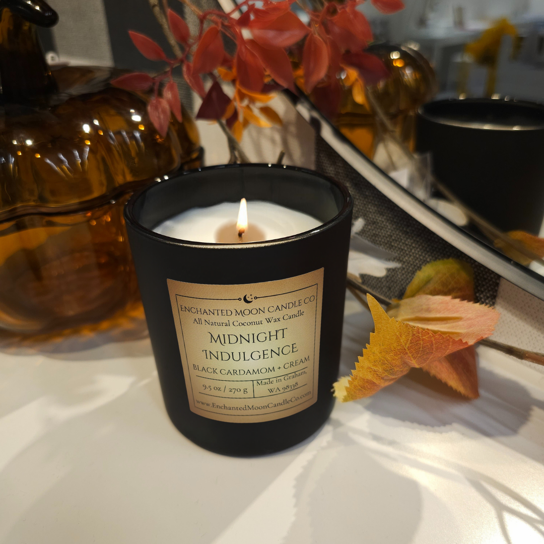 Indulge in the cozy aroma of black cardamom and cream with our Midnight Indulgence candle. The spiced bakery notes will transform any space into a warm and inviting sanctuary. Light it up and let the soothing scent envelop you.